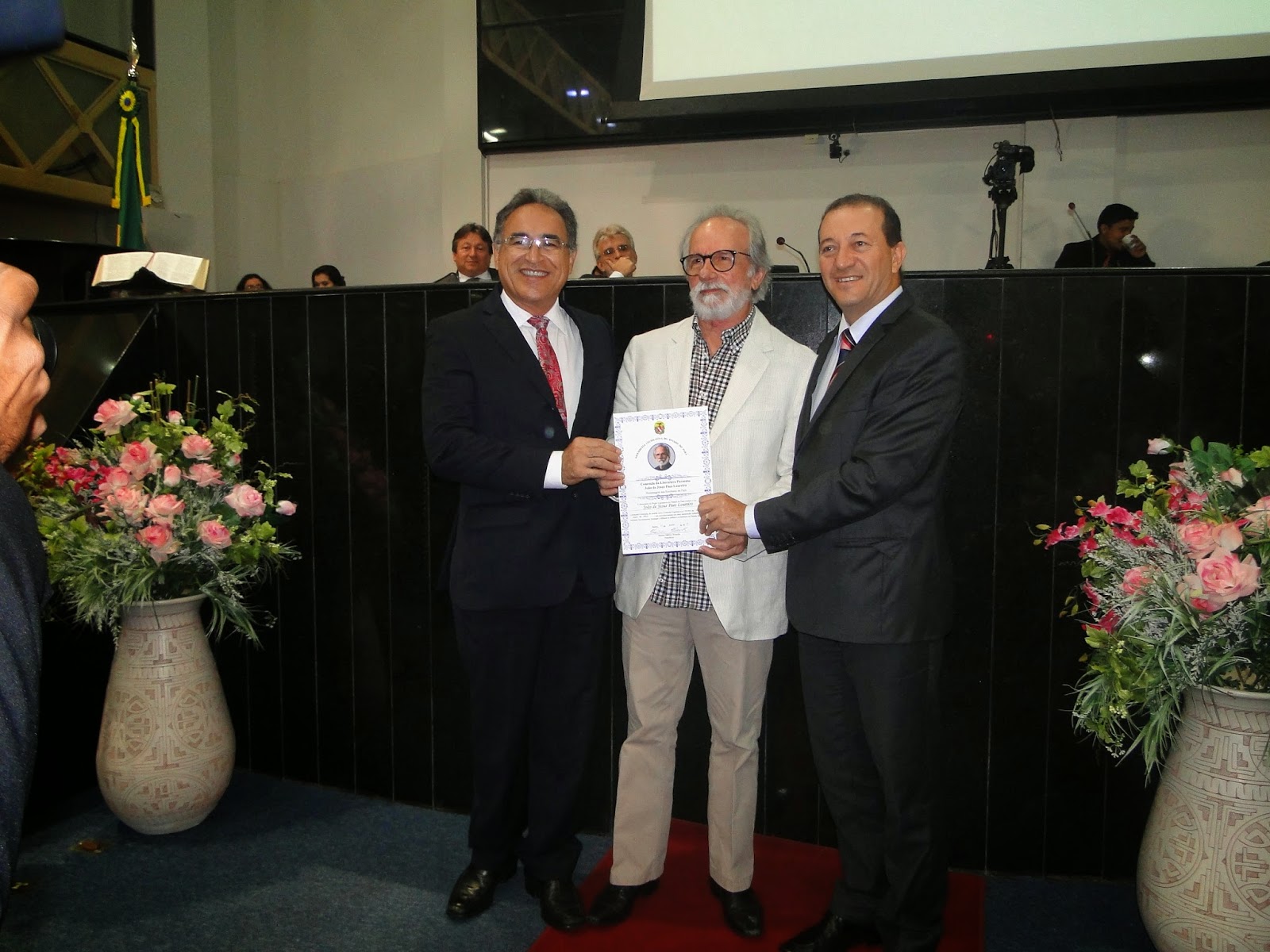 O primeiro agraciado com a “Comenda do Mérito Literário João de Jesus Paes Loureiro”, criada pela Resolução nº 01/2014, de iniciativa do deputado Edmilson Rodrigues (PSOL), foi o próprio João de Jesus Paes Loureiro, hoje, durante a sessão solene em homenagem ao Dia do Legislativo, na Alepa. O premiado escritor Daniel da Rocha Leite, graduado em Direito, Letras e Jornalismo e servidor efetivo da Casa é o segundo agraciado com a honraria, merecidamente. O 1º Secretário da Mesa Diretora, deputado Eliel Faustino (SDD) e o desembargador do Trabalho José Alencar compuseram a mesa oficial, ao lado do presidente da Alepa, deputado Márcio Miranda(DEM), e de JJ Paes Loureiro.
