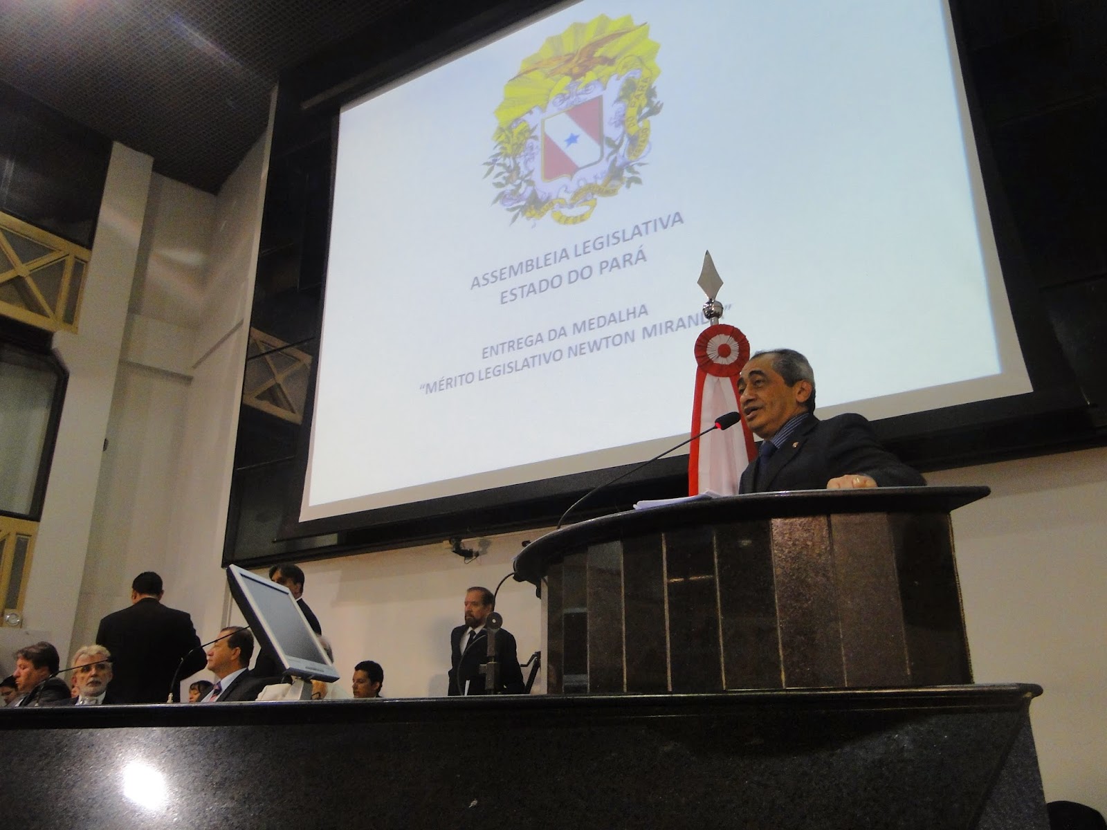 O deputado Raimundo Santos(PEN), Ouvidor da Casa e presidente da Comissão de Constituição e Justiça, foi destacado pelo presidente Márcio Miranda para fazer a saudação aos homenageados. Em seu discurso, ele salientou que a obra poética de Paes Loureiro tem sua universalidade construída a partir de signos do mundo amazônico – cultura, história, imaginário – propiciando uma cosmovisão e particular leitura do mundo contemporâneo, e que, dialogando com as principais fontes e correntes literárias da atualidade, Paes Loureiro realiza obra original, em que o mito se revela como metáfora do real. Por indicação de Raimundo Santos o Pastor Enaldo Ferreira de Brito, escritor, graduado em Contabilidade pela UFPA, Teologia pela SETAD, Direito pela Unama, Pós-Graduado em Direito Tributário pela Unisul, presidente da Convenção da Igreja-Mãe das Assembleias de Deus, foi distinguido com a comenda do Mérito Legislativo Newton Miranda.