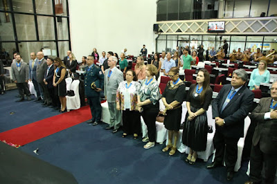A presidente do IHGP, Anaíza Vergolino e Silva; o 1º secretário do instituto, Pedro Rocha e Silva; o diretor de comunicação do IHGP, José Leôncio Ferreira de Siqueira; e representantes do Tribunal de Contas do Estado do Pará (TCE), Patrícia Barbosa Maciel; e do Museu Emílio Goeldi, Vanda Okada integraram a mesa oficial. A sessão contou com a participação da banda de música do Corpo de Bombeiros, que executou os hinos do Brasil e do Pará, no início e final, como prevê o regimento interno da Casa. Uma gravação do hino do IHGP, composto pelo desembargador federal do Trabalho Vicente Malheiros da Fonseca (música) e pelo advogado Célio Simões(letra), também foi executada.