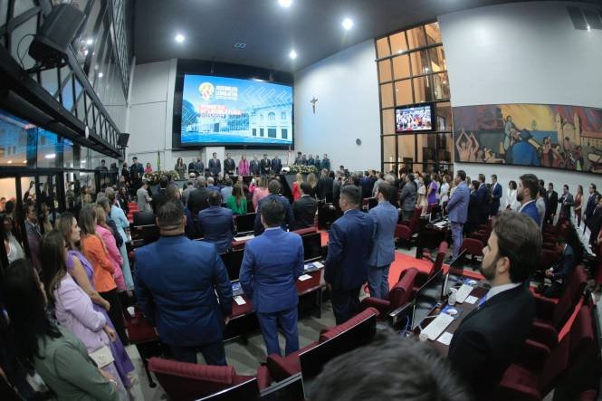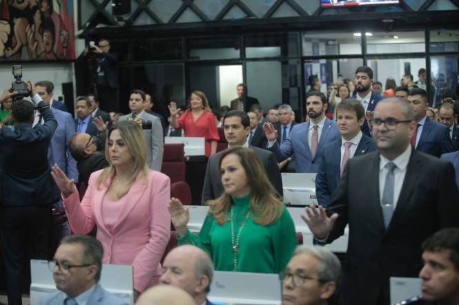 Foram empossados hoje na Assembleia Legislativa do Pará os 41 deputados estaduais eleitos para a 61ª Legislatura (2023-2027). Em seguida houve eleição para a Presidência e a Mesa Diretora, em chapa única, tendo sido reeleito praticamente à unanimidade – por 40 votos e um em branco – o deputado Chicão, que está no quinto mandato consecutivo na Casa. A nova Mesa Diretora tem na 1ª Vice-Presidência Luth Rebelo e na 2ª Vice Gustavo Sefer. Cilene Couto é a 1ª Secretária e Elias Santiago, Adriano Coelho e Aveilton Souza os 2º, 3º e 4º Secretários.