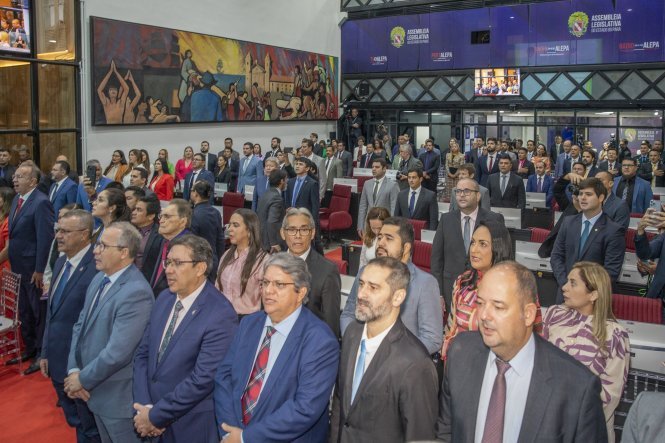 A mesa oficial da solenidade foi composta pelo presidente da Alepa, deputado Chicão; a primeira-dama Daniela Barbalho; a vice-governadora Hana Ghassan Tuma; a desembargadora Maria de Nazaré Saavedra, representando a presidente do TJE, desembargadora Nazaré Gouveia; o Procurador Geral de Justiça, César Mattar Jr.; o presidente do TCM-PA, Antônio José Guimarães; o Defensor Público Geral, João Paulo Carneiro Ledo; e a deputada Cilene Couto, 1ª secretária da Mesa Diretora.