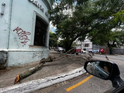 Há duas semanas o galho desta árvore caiu na calçada do prédio do Diário do Pará que fica na esquina da Trav. Piedade ...