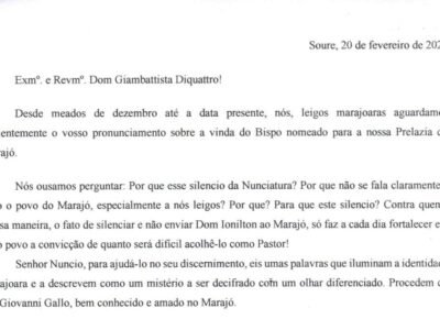 Carta aberta dos leigos marajoaras ao núncio apostólico