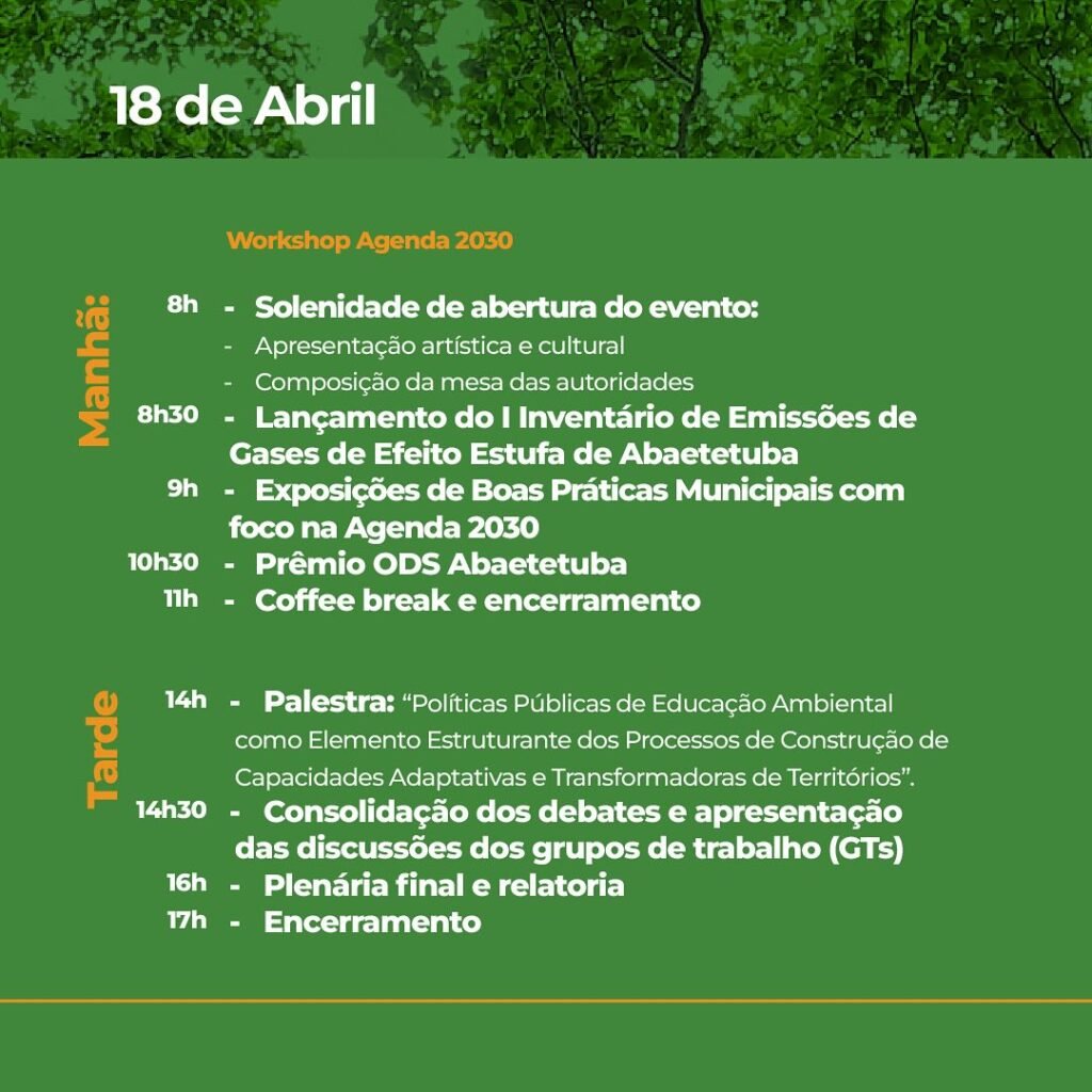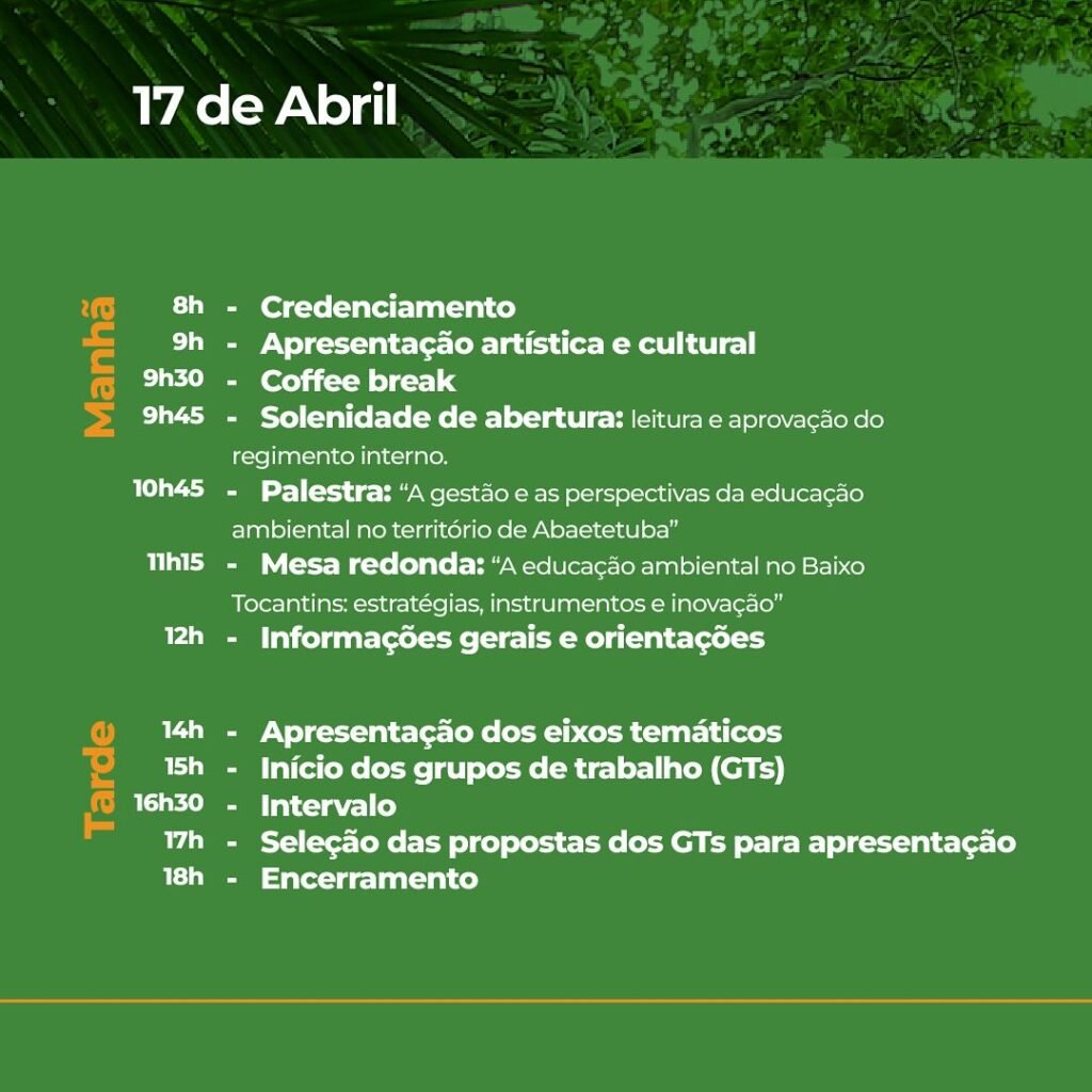 Sob o tema “Reflexão e Construção da Política Municipal de Educação Ambiental no Território de Abaetetuba: Desafios e Perspectivas”, nos próximos dias 17 e 18 de abril, acontecerá em Abaetetuba a I Conferência Municipal de Educação Ambiental.