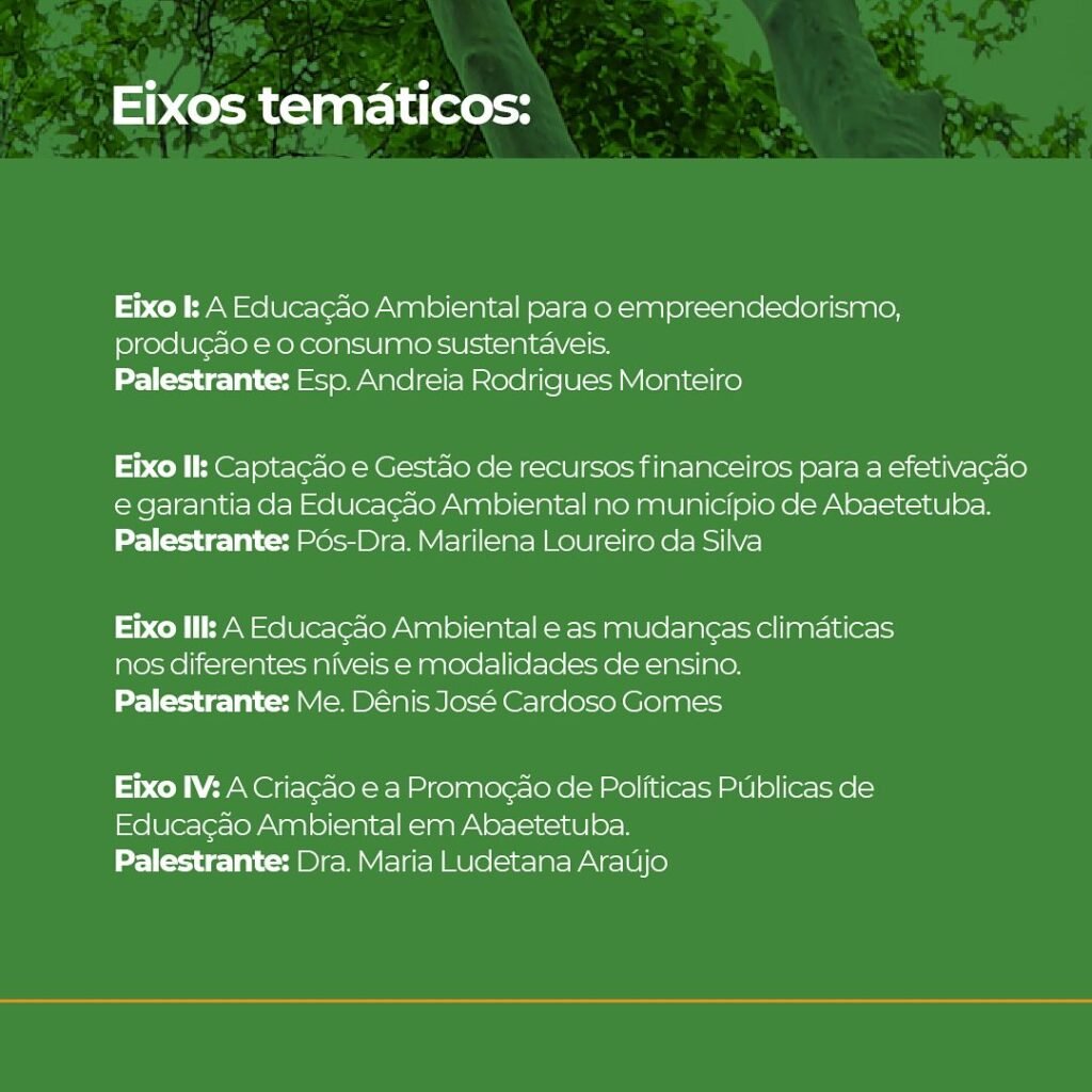 Com uma programação repleta de atividades e debates, a conferência abordará diversos eixos temáticos fundamentais, incluindo a captação de recursos, gestão ambiental, educação e promoção de políticas públicas voltadas para o meio ambiente, que são pilares essenciais para orientar ações em direção aos objetivos da Agenda 2030 e sinalizar compromisso com um futuro sustentável.