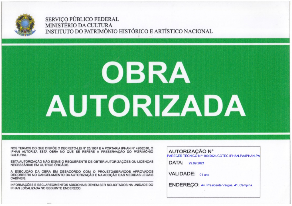 Através de ofício à Superintendente do Iphan no Pará, Rebeca Ferreira Ribeiro, a coordenadora técnica substituta do Iphan-PA, Denise Rosário de Carvalho, opinou pela autorização da obra na Companhia Docas do Pará, que tinha sido alvo da Portaria Iphan nº 420/2010. Ela informou que, em decorrência da fiscalização na CDP, o processo nº 01492.000362/2021 teve atendimento de todas as exigências por parte da estatal federal, e por isso o termo de embargo perdeu sua eficácia, podendo a obra seguir sua execução. A comunicação foi feita de imediato à Cia Docas do Pará.