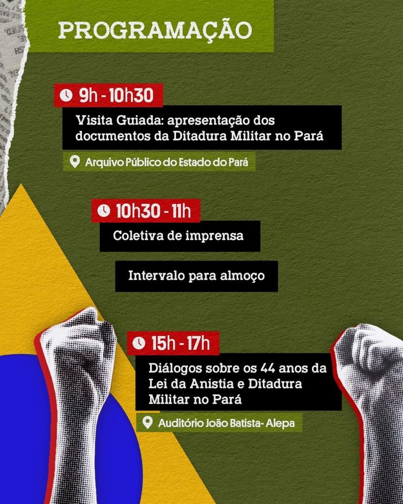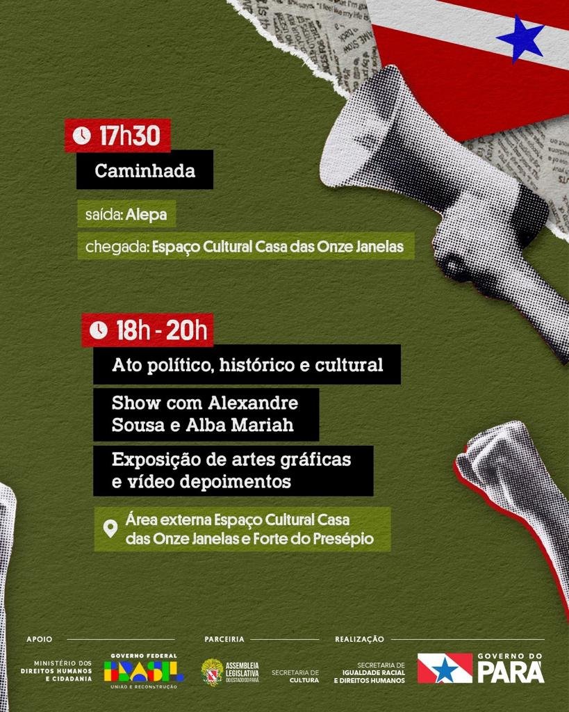A programação inclui apresentações musicais de Alba Mariah e Alexandre Sousa, e depoimento de presos políticos paraenses que tiveram os direitos recuperados após a Lei da Anistia.