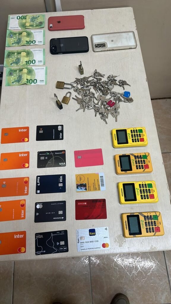 Com ela foram apreendidos várias máquinas de cartão, cartões de crédito, chaves falsas e notas de Euro, pertencentes a uma das vítimas.