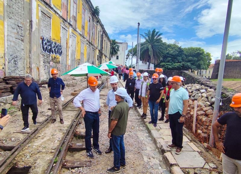 No Solar da Beira, no Boulevard Castilho França, a Prefeitura de Belém apresentou o impacto positivo da obra para população e permissionários, além expor as etapas e a fase atual da obra: a execução da feira provisória, do estacionamento do Ver-o-Peso e da Praça do Relógio, com remanejamento de 435 feirantes. “Já estamos com 80% da obra executada da Ladeira do Castelo, que é a parte do calçamento dos revestimentos em granito e rochas similares”, explicou Edmilson, que levou a comitiva ao canteiro de obras da ladeira, que dá acesso à Feira do Açaí, em fase final do trabalho minucioso dos revestimentos em granito e rochas similares.